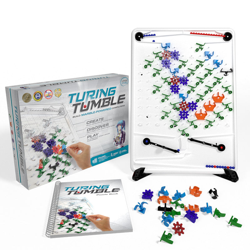 Turing Tumble is a revolutionary game where players (ages 8 to adult) build mechanical computers powered by marbles to solve logic puzzles. See how simple switches, connected together in clever ways, can do incredibly smart things. Easy to learn, hard to stop.